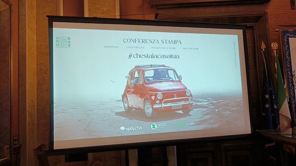 Che stai a casa tua” è il titolo del nuovo spot di sensibilizzazione ambientale commissionato dall’AroBa8 che comprende le città di Monopoli, Conversano, Polignano a Mare e Mola di Bari. La campagna pubblicitaria ha visto partecipare in veste di testimonial il duo comico Toti e Tata, in qualità anche di coautori. I due attori Antonio Stornaiolo ed Emilio Solfrizzi hanno partecipato alla conferenza di presentazione dello spot avvenuta ieri pomeriggio nella sala del Consiglio Metropolitano di Bari.
