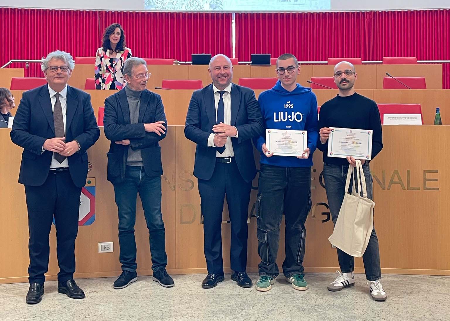Premiato per il concorso “Mi impegno per la legalità” con lo straordinario lavoro dal titolo “Rocco Dicillo, un eroe di tutti i giorni”. È lo studente Giacomo Dell’Aglio dell’istituto d’istruzione secondaria superiore “Alpi-Montale” di Rutigliano, giovane della classe 4G, indirizzo Grafica e Comunicazione, insignito venerdì 21 marzo 2025 nella prestigiosa sala consiliare della Regione Puglia, a Bari.