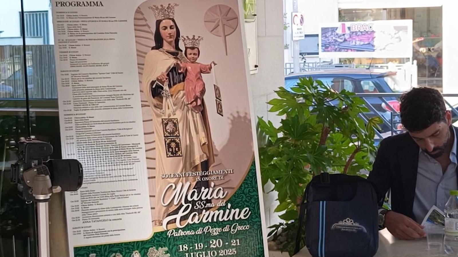 Tutto è pronto per quattro giorni di festa a Pezze di Greco in onore della patrona Maria SS.ma del Carmine. Il programma dei solenni festeggiamenti patrocinati dal Comune di Fasano e dal Comitato Festa Patronale di Pezze di Greco è stato presentato nel pomeriggio di sabato 21 giugno alla presenza del Sindaco di Fasano Francesco Zaccaria, dell’Assessore al Turismo Pier Francesco Palmariggi, del Presidente del Comitato Festa Nicola Colucci con il Segretario Fabio Potone e del parroco don Donato Liuzzi.