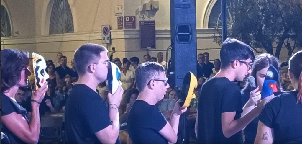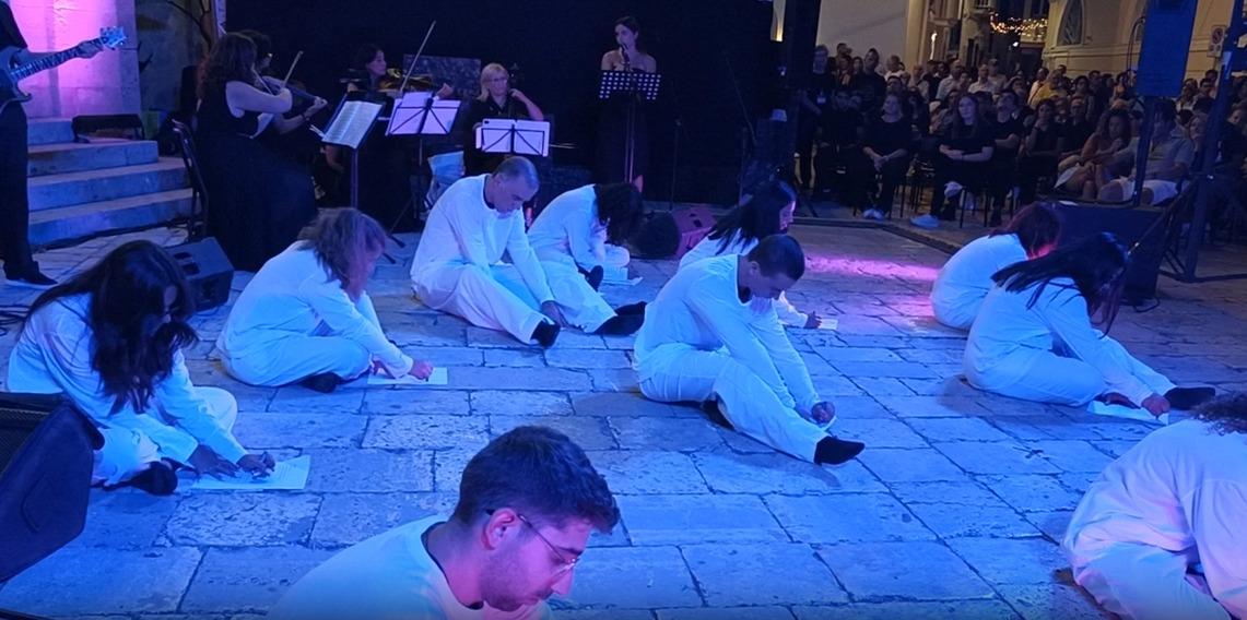 Standing ovation da parte del pubblico alla fine dello spettacolo che ha ottenuto il sostegno degli Assessorati alla Cultura, Politiche Giovanili e Servizi Sociali del Comune di Monopoli. Gli slogan e i cartelli hanno fatto riflettere ed hanno ammonito la società in cui viviamo. Pienissima la platea di pubblico sul sagrato della Basilica Cattedrale di Monopoli: ultima serata di agosto che ha chiuso anche le celebrazioni per il mese mariano dedicato alla Madonna della Madia coordinato dal Comitato Festa Patronale.