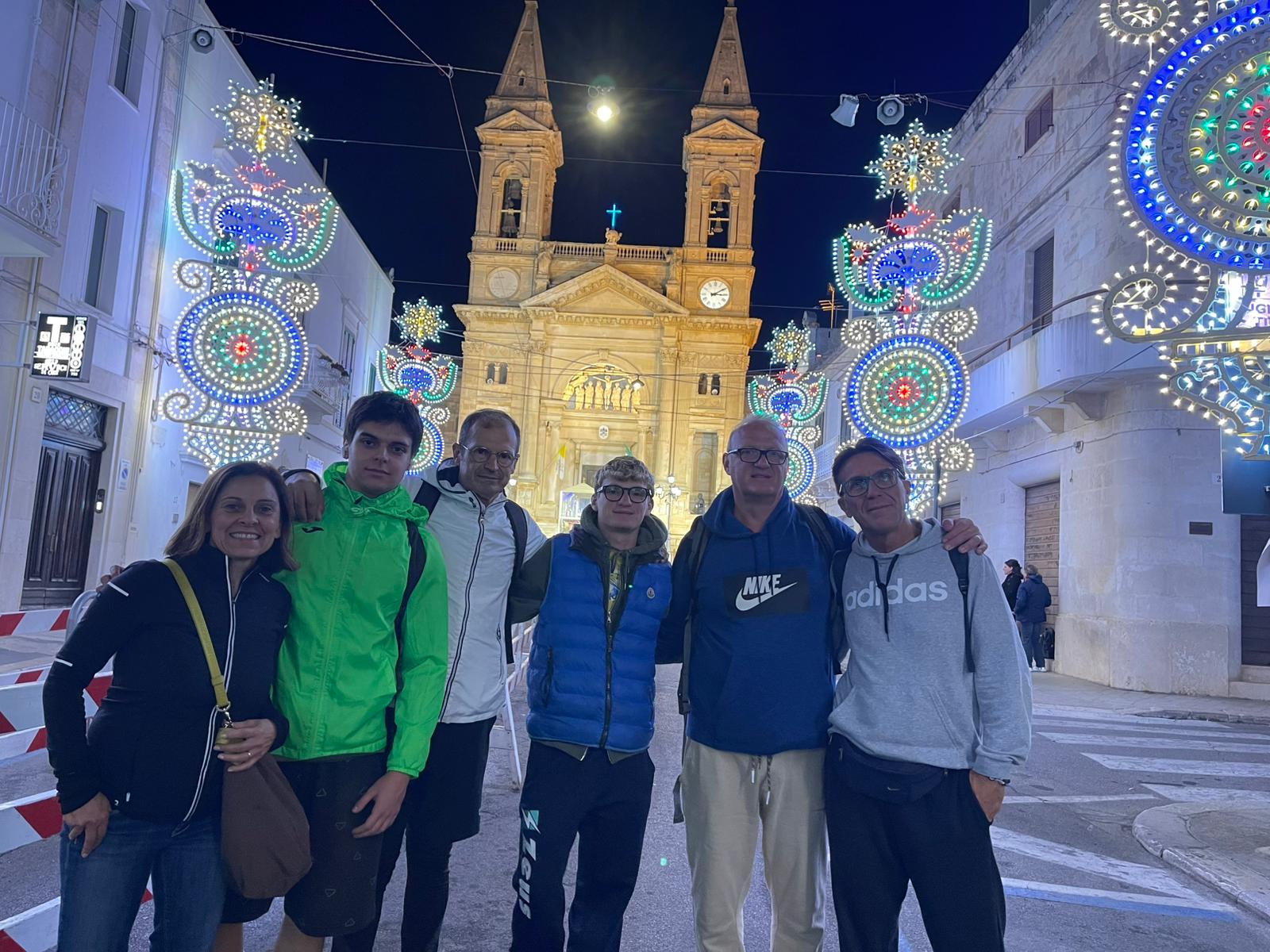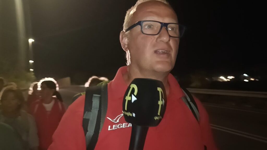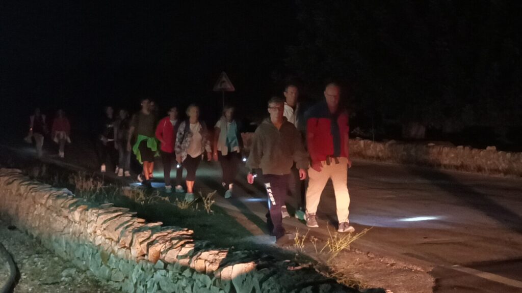 È un rito che viene compiuto da tanti fedeli: centinaia di persone, ogni anno, sfidano la stanchezza, il freddo, il buio ed il pericolo delle auto che sfrecciano sulle provinciali. Sono molte le comunità che si sono mobilitate stanotte dai paesi del circondario della Valle d’Itria e si sono incontrate all’alba sul sagrato. Per loro, accoglienza con bevande calde offerte dai volontari e stornelli e musica da parte del gruppo scout mentre si attende tutti insieme l’inizio della prima celebrazione eucaristica delle 4 del mattino. Il gruppo di Monopoli compie questo pellegrinaggio da molti anni ormai. Si sono radunati davanti l’ingresso del cimitero alle 22:00. E con passo spedito, torce nelle mani, giubbotti catalinfranfenti, hanno risalito la provinciale SP113. “Abbiamo compiuto quattro soste prima dell’arrivo. – racconta Nadira una del gruppo di devoti – Chi per necessità di riposare i piedi, chi per ristorarsi con cibo o acqua e caffè“.
