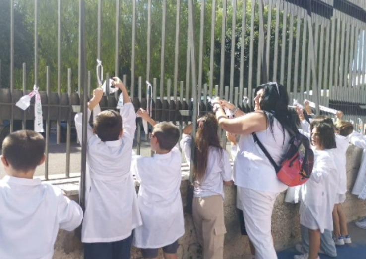Monopoli, “straccetti di pace” bianchi per Gaza e Ucraina sui cancelli del 2^ I.C. Modugno-Galilei