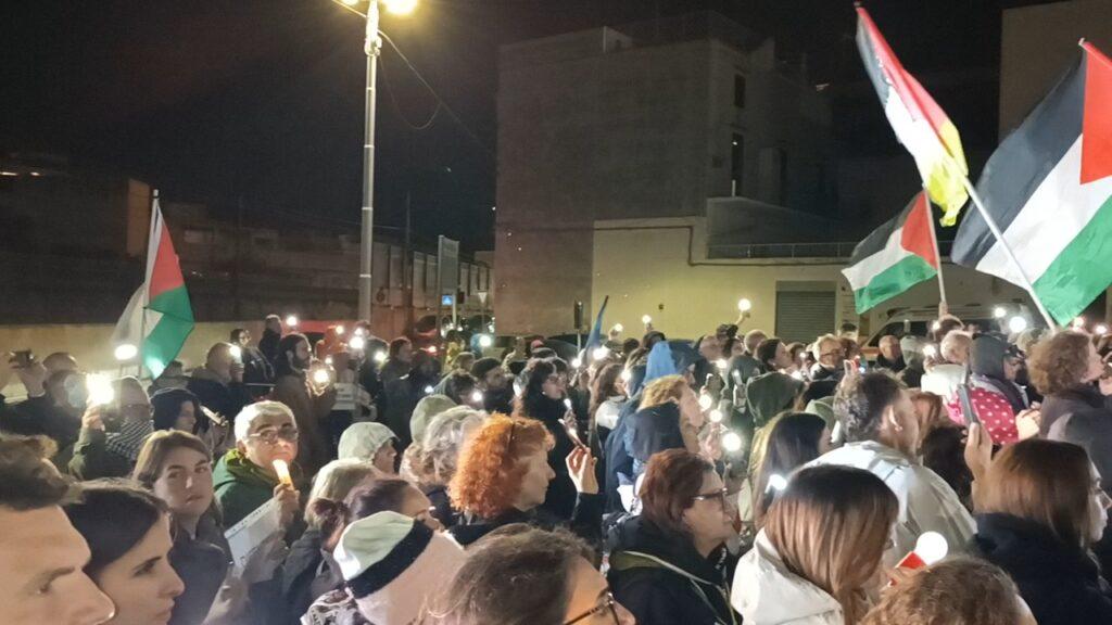 MONOPOLI – Una luce nella notte per non dimenticare. Si è svolta ieri sera, alle ore 21:00, davanti al Centro Trasfusionale dell’ospedale San Giacomo di Monopoli, la manifestazione “Luci accese sulla Palestina – 100 ospedali per Gaza”, un flash mob pacifico organizzato in contemporanea con altre iniziative spontanee simili che stavano avvenendo in altri nosocomi con lo scopo di rendere omaggio e tenere viva la memoria dei 1677 operatori sanitari uccisi a causa della guerra in corso nella Striscia di Gaza.