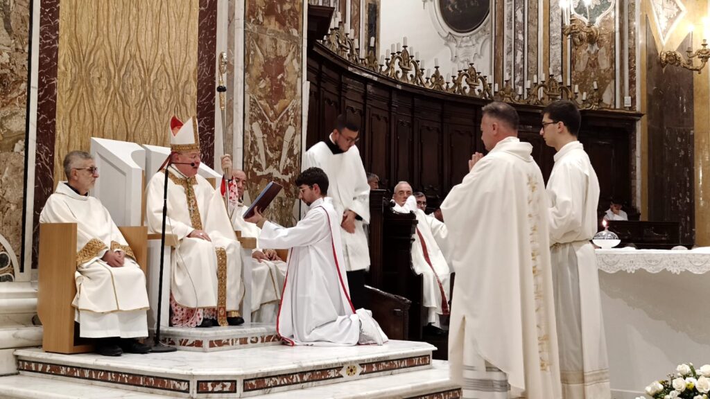 Ieri sera, una messa lunga e solenne (durata più di due ore), cominciata alle 19 e terminata oltre le 21, quasi liturgia di popolo, ha segnato il passaggio di consegne pastorali all’interno dell’unità pastorale del centro storico, che comprende, oltre la Cattedrale, le chiese di San Francesco d’Assisi e Santa Teresa-Santi Pietro e Paolo. A presiederla, Sua Eccellenza Mons. Giuseppe Favale, Vescovo della Diocesi Conversano-Monopoli, che con parola viva ha tracciato un solco profondo tra memoria e futuro, tra responsabilità e speranza.