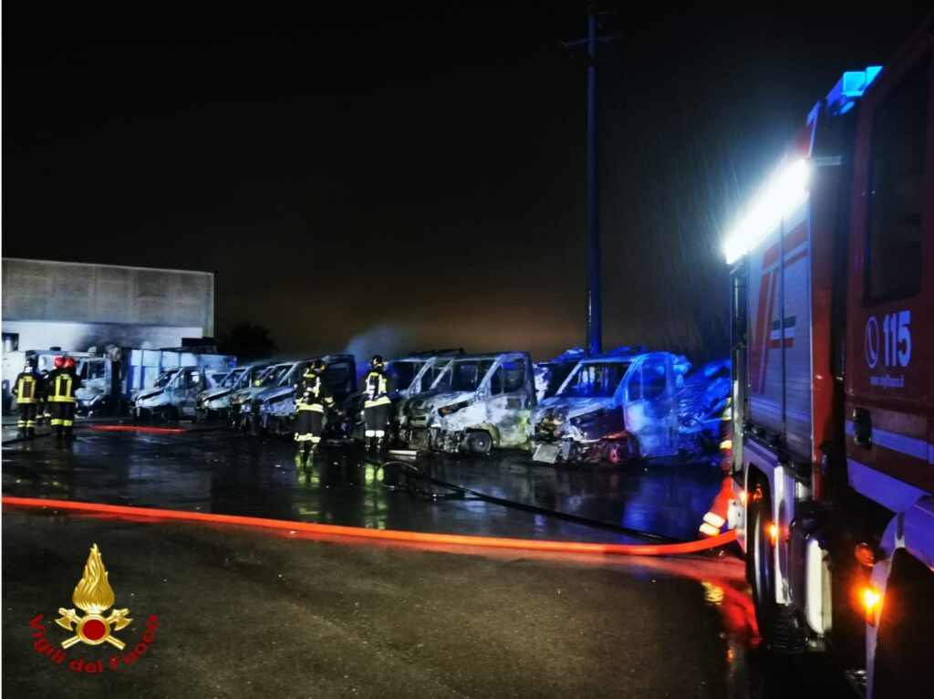 Fortunatamente non si registrano feriti, ma i danni sono ingenti: tutti i mezzi sono andati distrutti. Restano da chiarire le cause del rogo, sulle quali sono in corso accertamenti da parte delle forze dell’ordine.